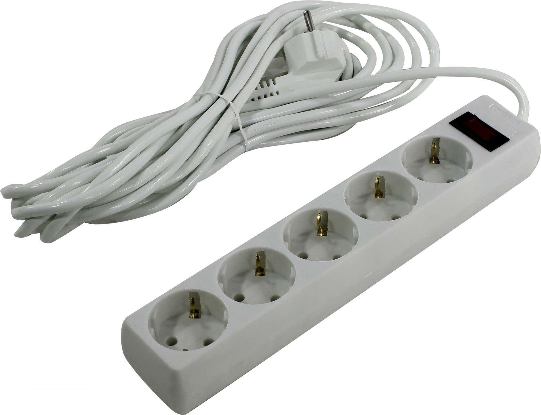 Сетевой фильтр ExeGate SP-5-5W 5евро с заземлением, 5м, выключатель с подсветкой, белый 221190
