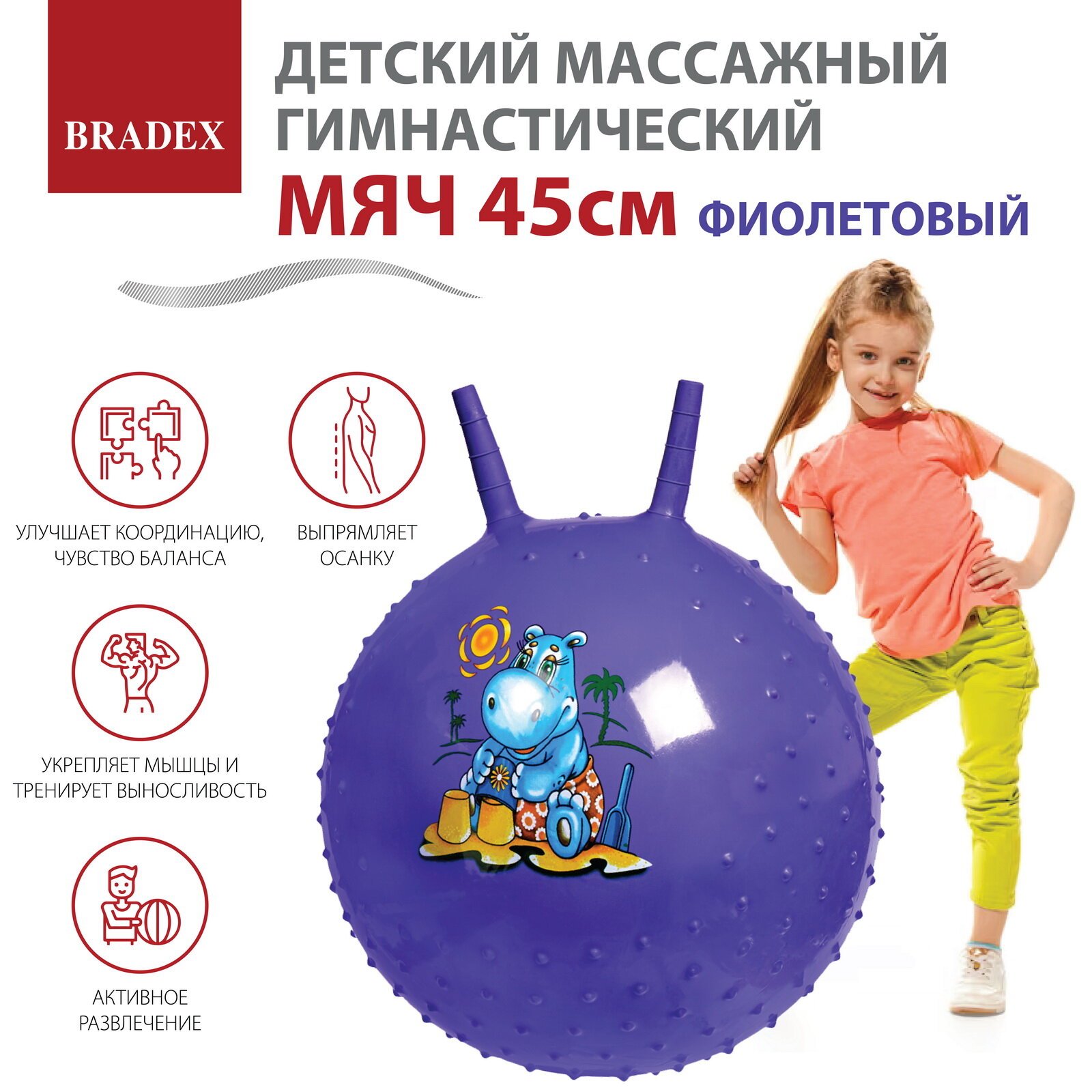 Детский массажный гимнастический мяч, фиолетовый DE 0537 информация: