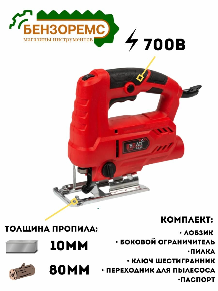 10 цен на Лобзик электрический BRAIT BJS-80 (пропил 80мм, 3000об/мин, 700Вт)