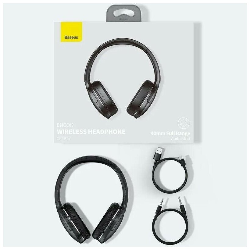 Наушники Baseus Encok D02 Pro полноразмерные, беспроводные, BT 5.0, jack 3.5 мм, черный NGD02-C01