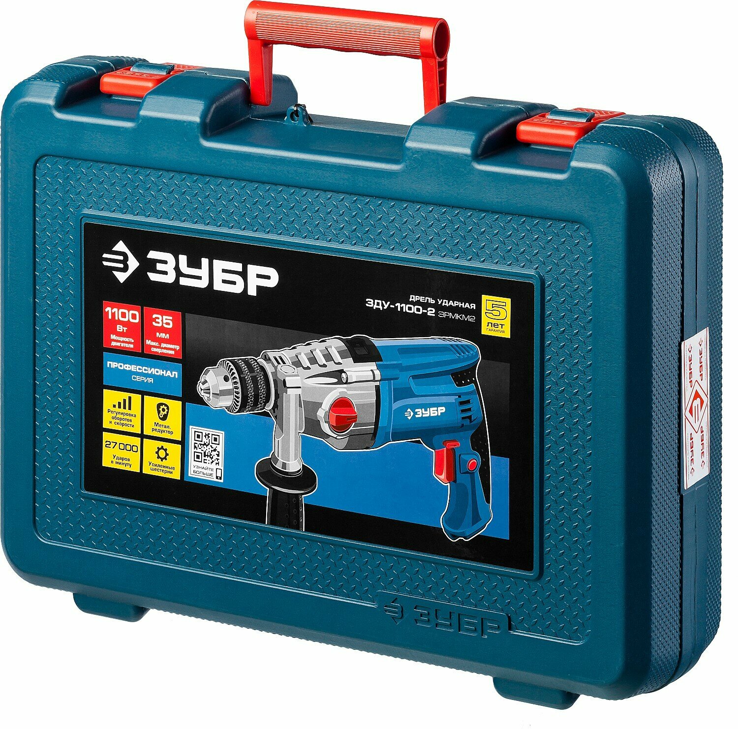 ЗУБР 1100Вт, 13 мм, 2 скорости, ударная дрель, мет. корпус, кейс, Профессионал ЗДУ-1100 ЭРМКМ2 информация: