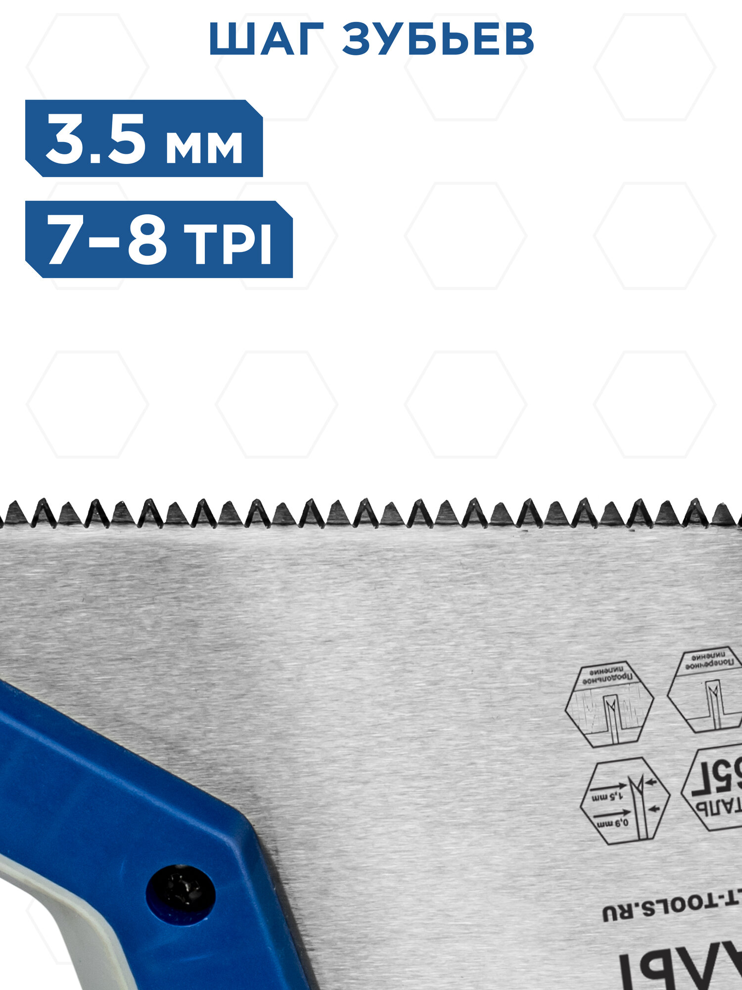 Ножовка по дереву кобальт 450 мм, шаг 3,5 мм/ 7 TPI, закаленный зуб, 3D-заточка информация: