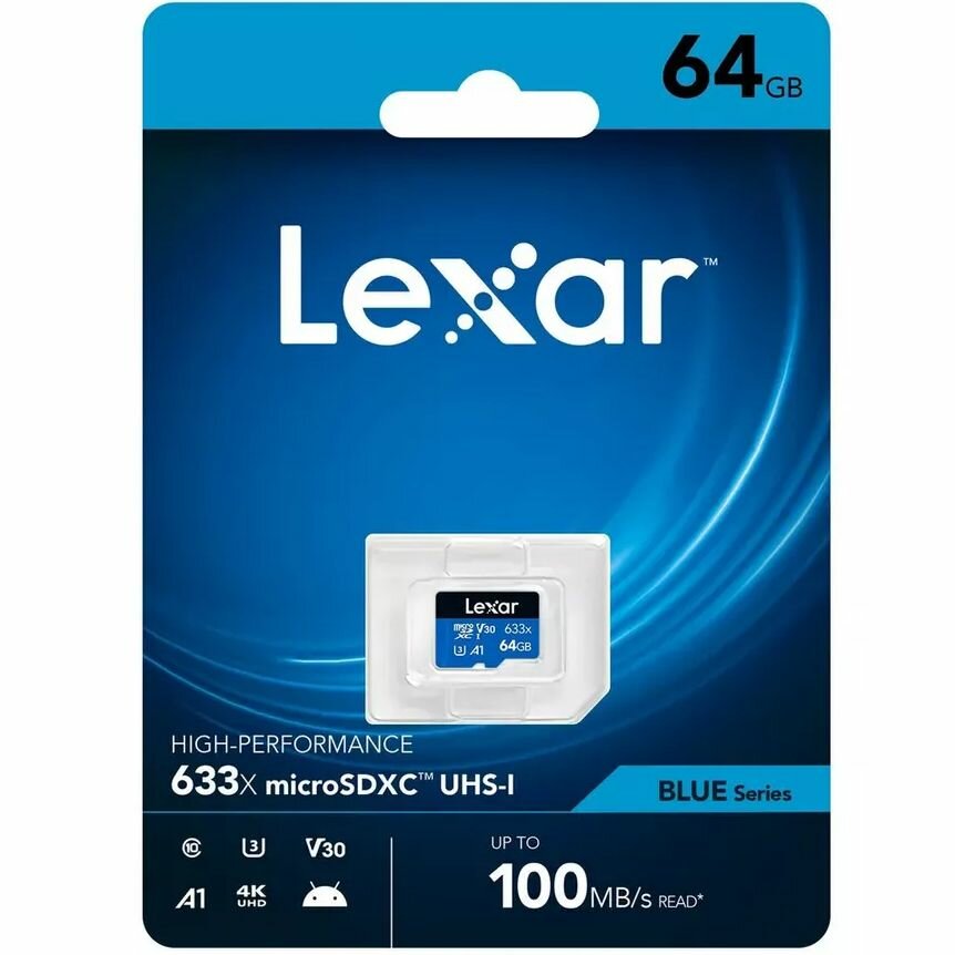 Карта памяти Lexar 633x microSDXC 64Gb/100mb/s UHS-I серии BLUE (LMS0633064G-BNNNG) информация: