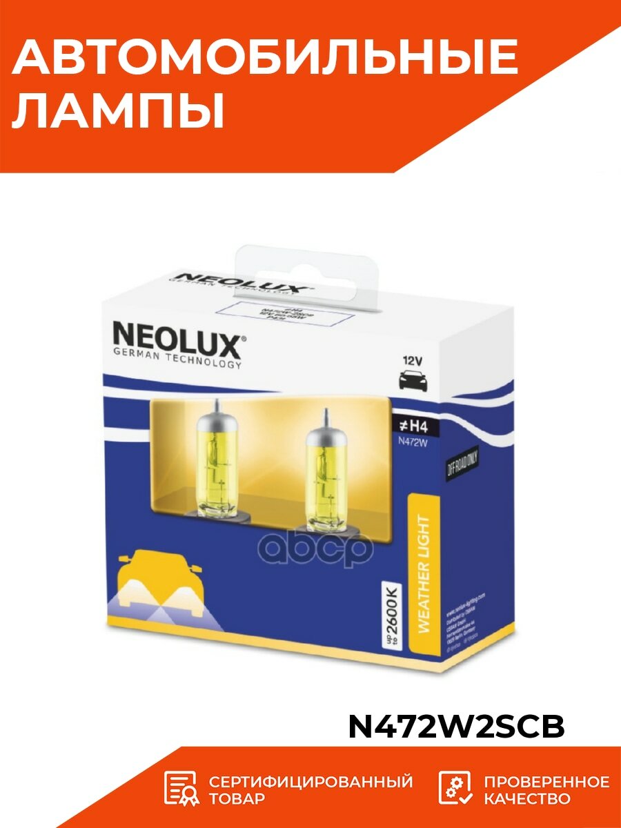 Лампа Н4 12v (55w) Neolux Weather Light 2600k, Двойной Картонный Бокс Neolux арт. N472W-2SCB информация: