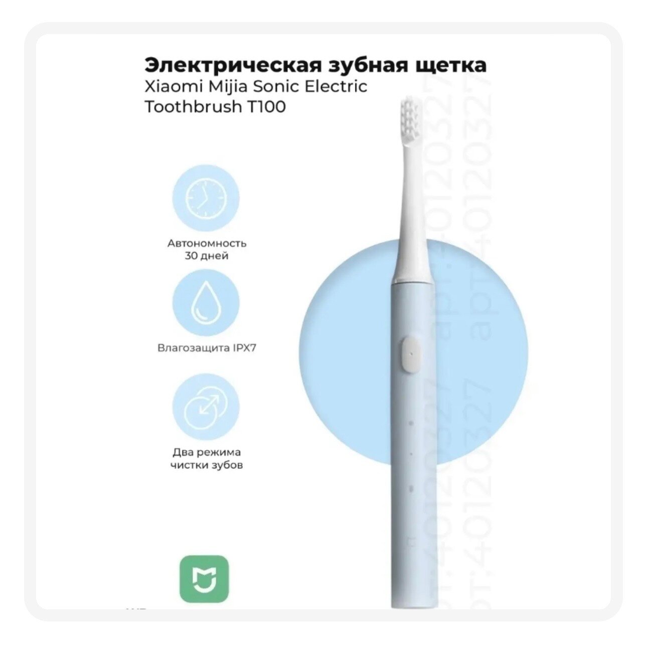 Зубная щетка электрическая Xiaomi MiJia T100 синяя информация: