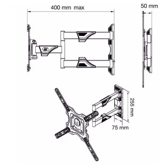 Кронштейн для телевизора наклонно-поворотный 32"-55" премиум класса P4
