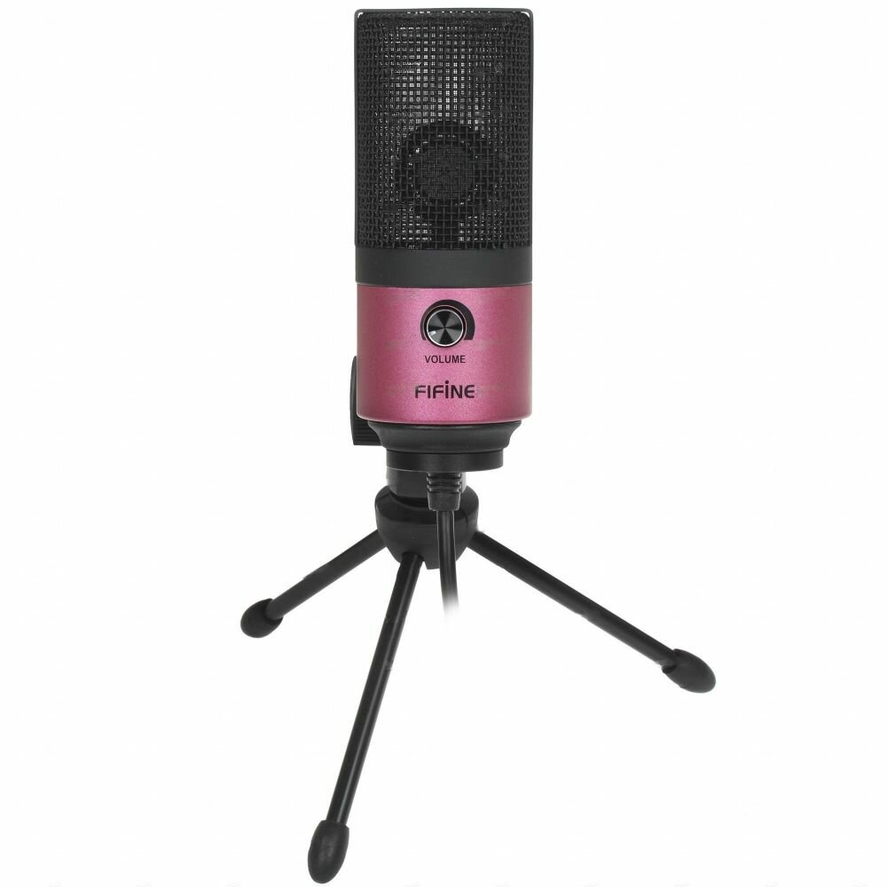 Микрофон FIFINE K669 (розовый, на штативе, USB 5V, 20Hz-20kHz, -34dB±30% (1kHz), S/N 78dB, шнур 1.8 м, рег. громкости)