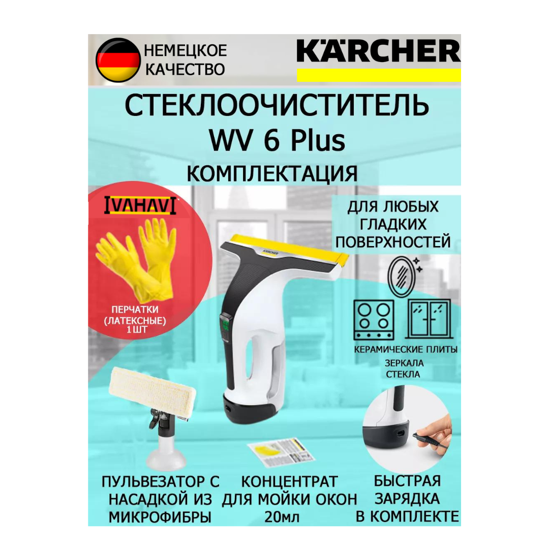 Стеклоочиститель Karcher WV 6 Plus белый+латексные перчатки информация: