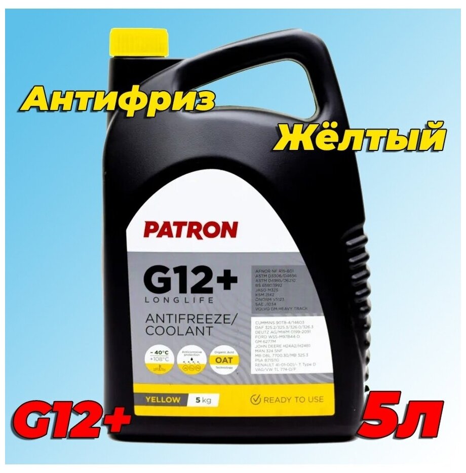 Антифриз Patron Yellow G12+ Готовый -40C Желтый 5 Кг Pcf5005 PATRON арт. PCF5005