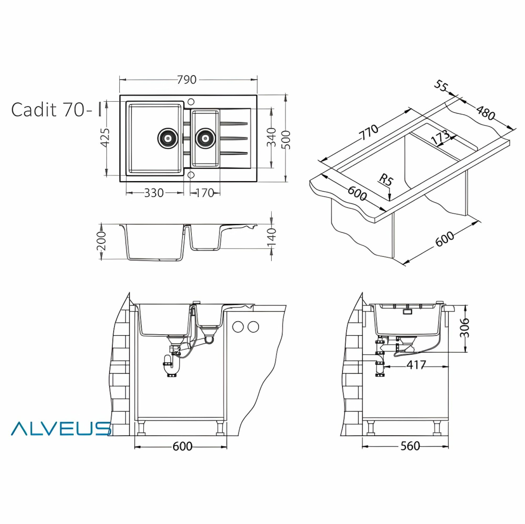 Мойка ALVEUS GRANITAL CADIT 70 CARBON - G91 790 X 500