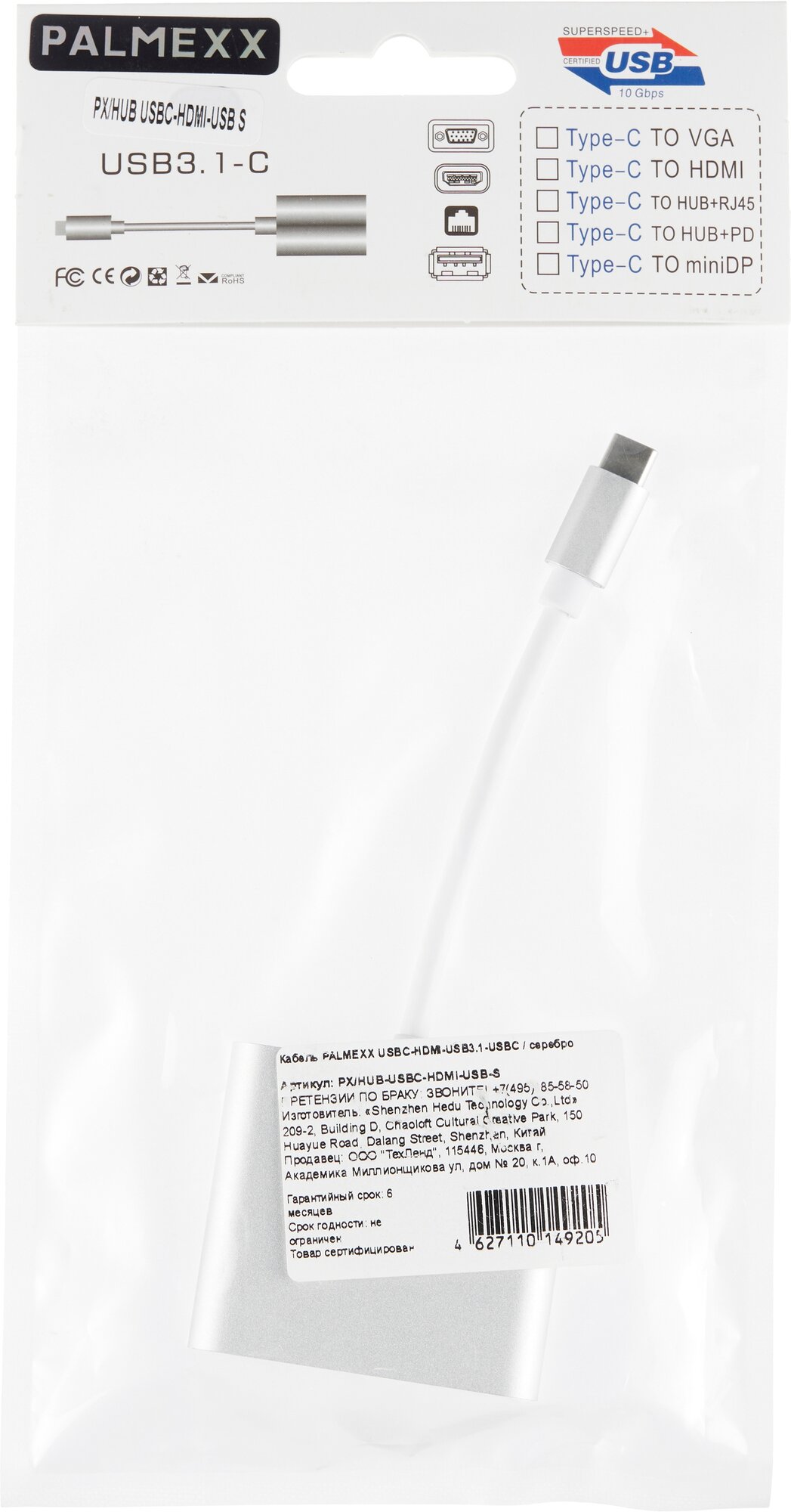 Док.станция PALMEXX USBC-HDMI-USB3.1-USBC / серебро информация: