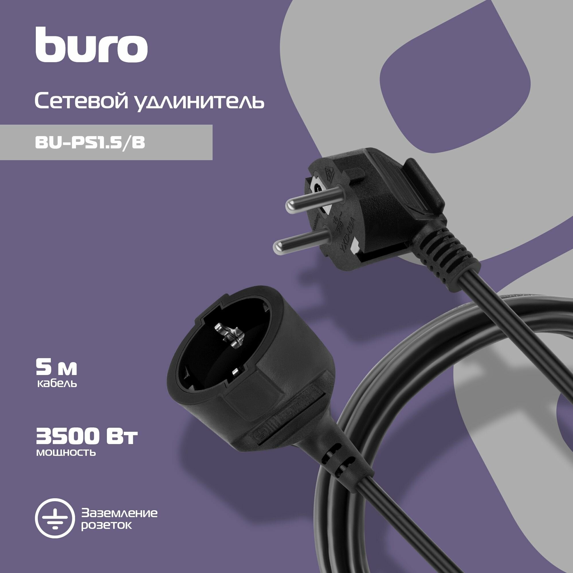 Удлинитель Buro BU-PS1.5/B 5м черный