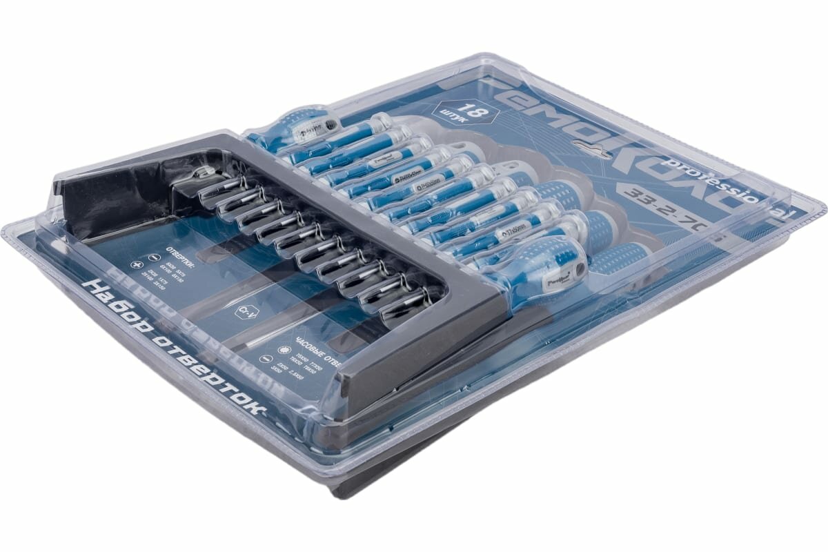 10 цен на Набор отверток CrV, пластиковая полка, 18 предметов, 33-2-705 .