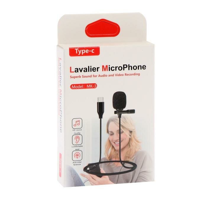 10 цен на Микрофон на прищепке G-104, 20-15000 Гц, -34 дБ, 2,2 кОм, Type-C, 1,5 м, черный (6958630)