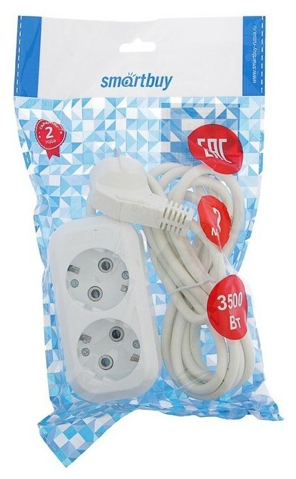 Отзывы на Удлинитель Smartbuy, 2 розетки, 2 м, 16 А, 3500 Вт, ПВС 3х1 мм2, с з/к, белый 3032290 Smartbuy .