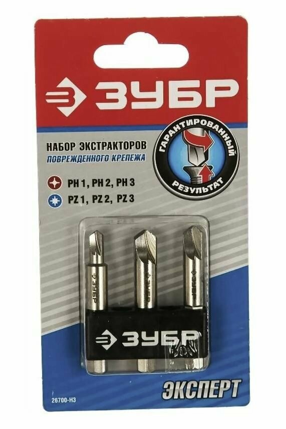 Набор ЗУБР: Экстракторы поврежденного крепежа,для выкручивания крепежа с износом граней шлица до 95%,3предмета [26700-H3] информация: