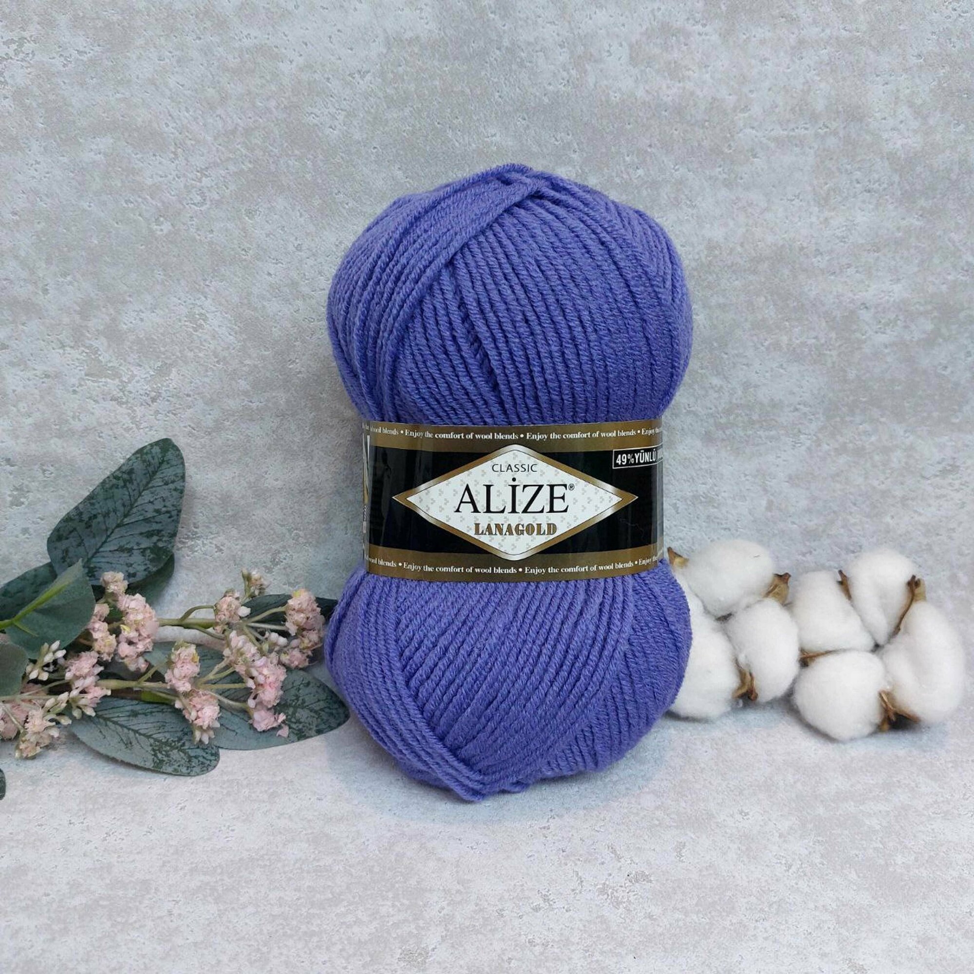Пряжа Alize Lanagold classic (Ализе Ланаголд классик), комплект: 2 шт., цвет: черника (215), состав: 49% шерсть, 51% акрил, вес: 100 г, длина: 240 м
