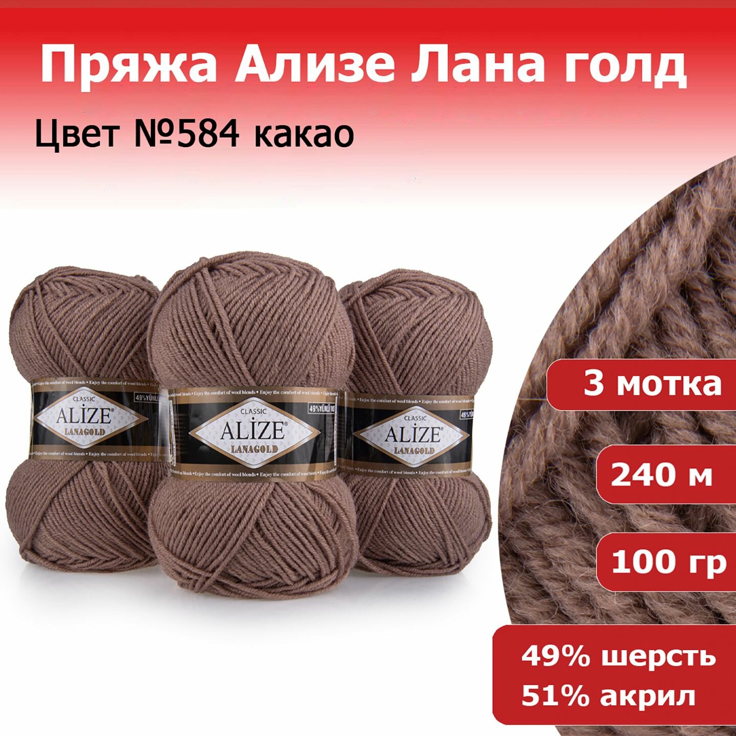 Пряжа Alize Lanagold норка (584), 51%акрил/49%шерсть, 240м, 100г, 3шт информация: