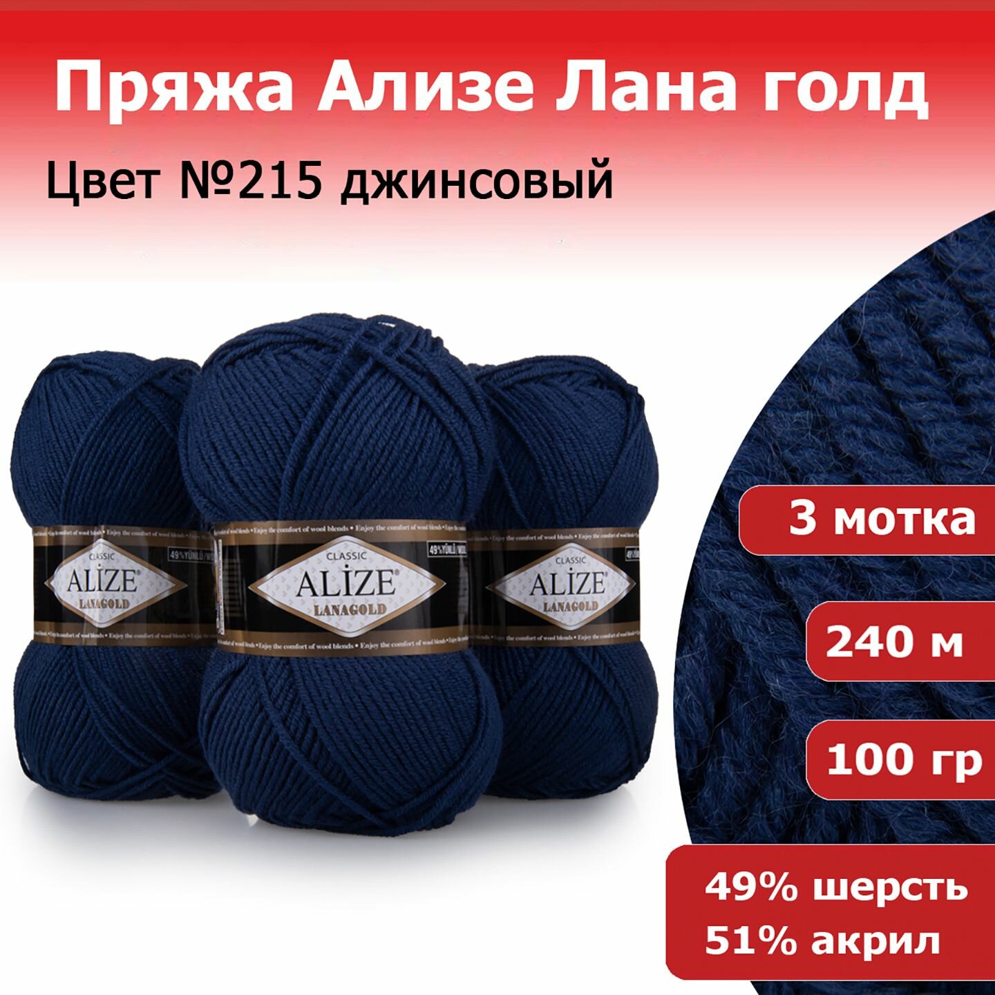 Пряжа Alize Lanagold черника (215), 51%акрил/49%шерсть, 240м, 100г, 3шт информация:
