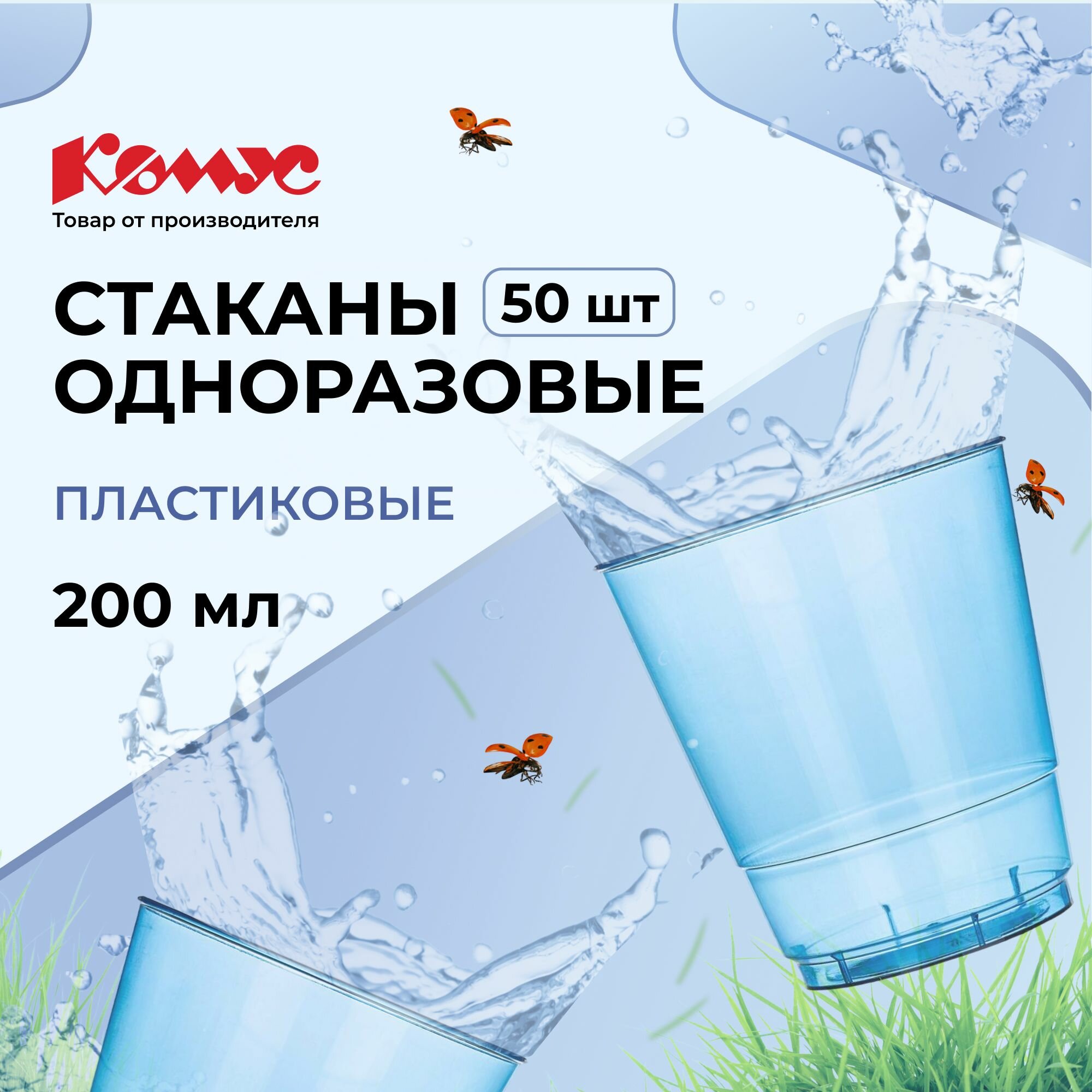 Комус стаканы одноразовые, пластиковые Кристалл, 200 мл, 50 шт., синий информация: