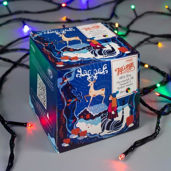 Гирлянда "Нить" 20 м , IP20, тёмная нить, 200 LED, свечение мульти, 8 режимов, 220 В информация: