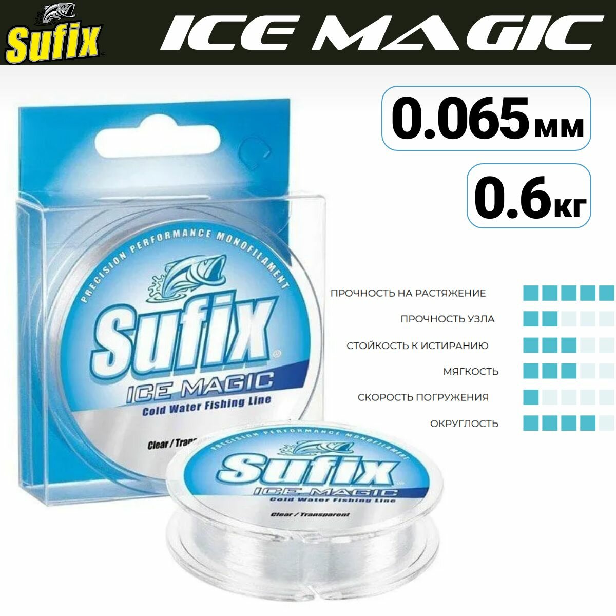 Леска зимняя Sufix ICE MAGIC Clear 50м 0.065мм 0.6кг информация:
