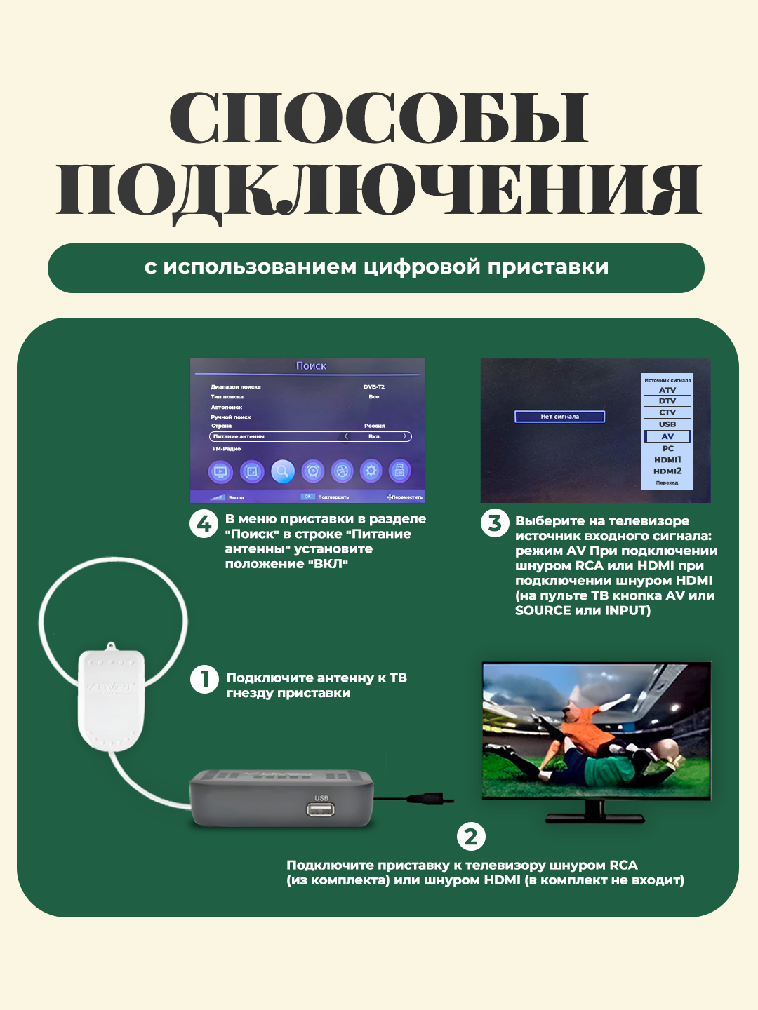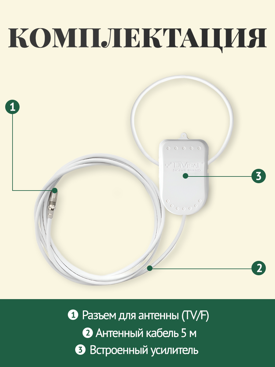 10 цен на Антенна для цифрового тв комнатная активная Волжанка 5в. 5м. с присоской