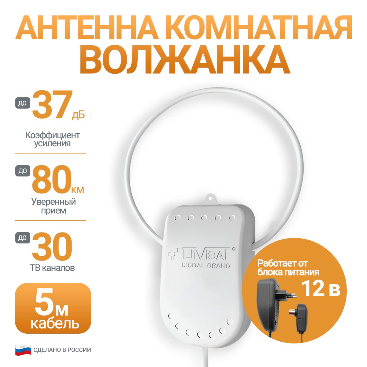 10 цен на Антенна для цифрового тв комнатная активная Волжанка блоком 12В 5м с присоской