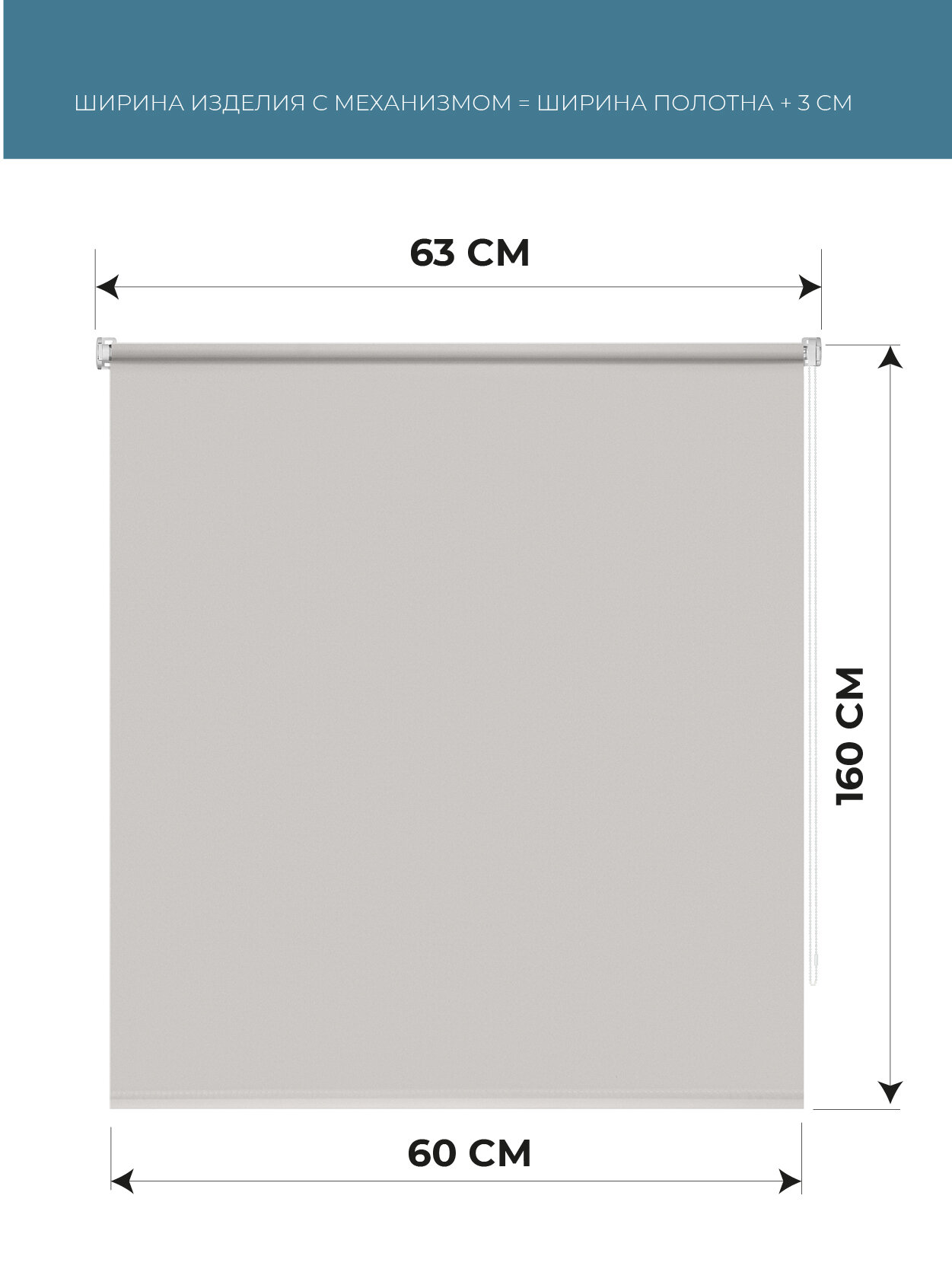 Рулонные шторы 60 см х 160 см Светло-бежевый Плайн DECOFEST 886 ₽
