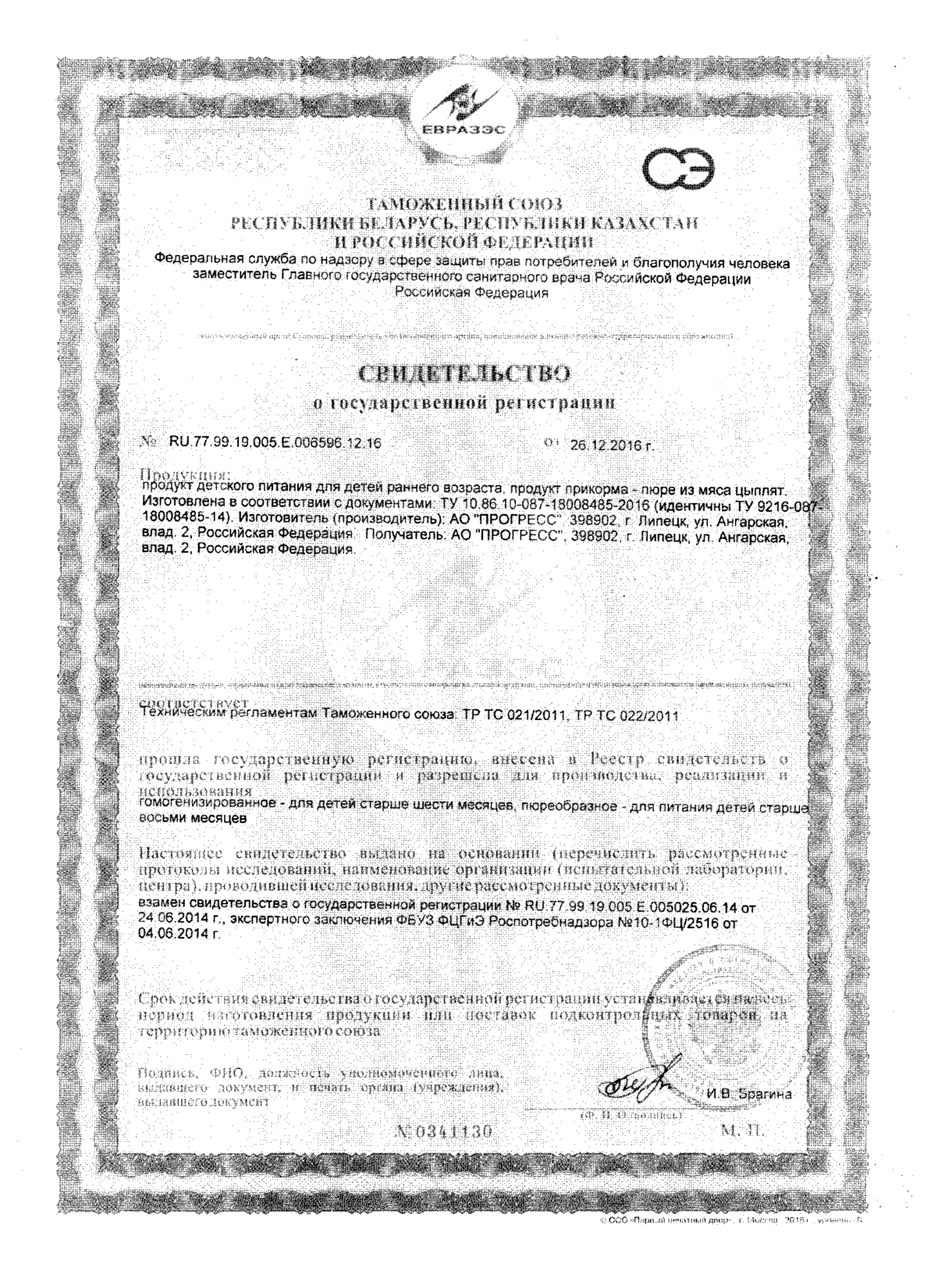 Мясное детское пюре цыпленок для детей с 6 мес 12х80 г