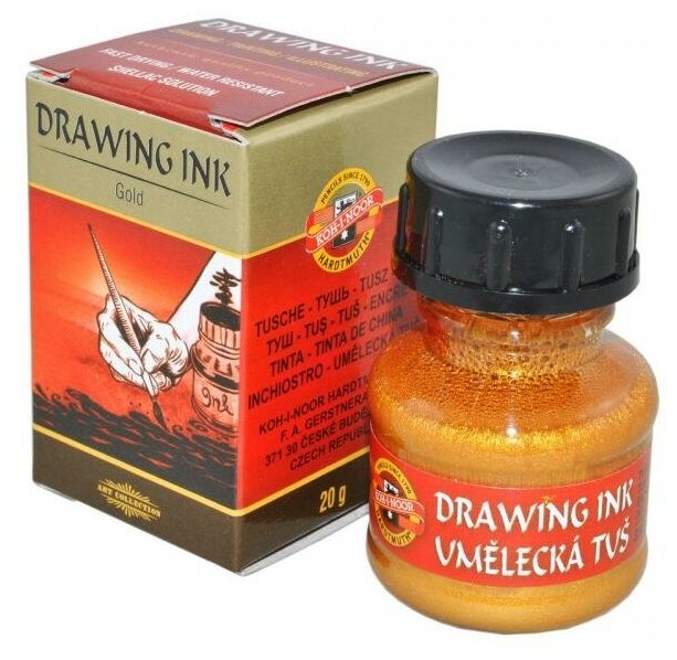 Тушь для письма и рисования художественная 20 мл, Koh-I-Noor, золотой