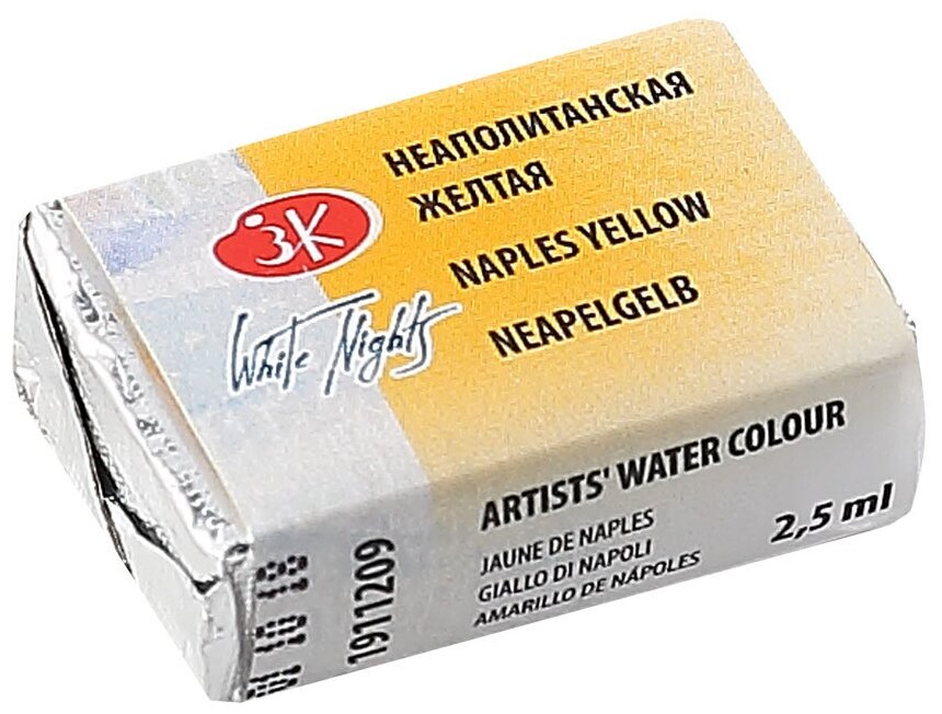 Акварель художественная «Белые ночи», 2.5 мл, неаполитанская жёлтая, в кювете информация: