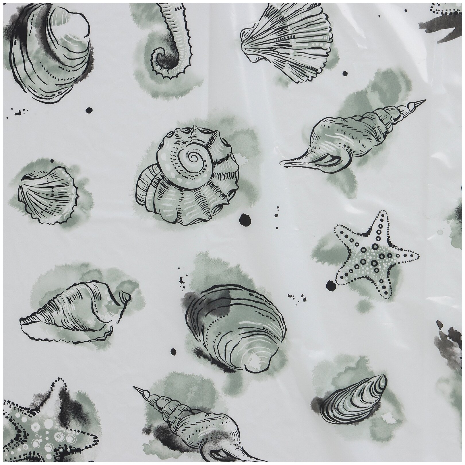 Штора для ванной комнаты VILINA водонепроницаемая полиэтиленовая 180х180 см Ракушки зелёные