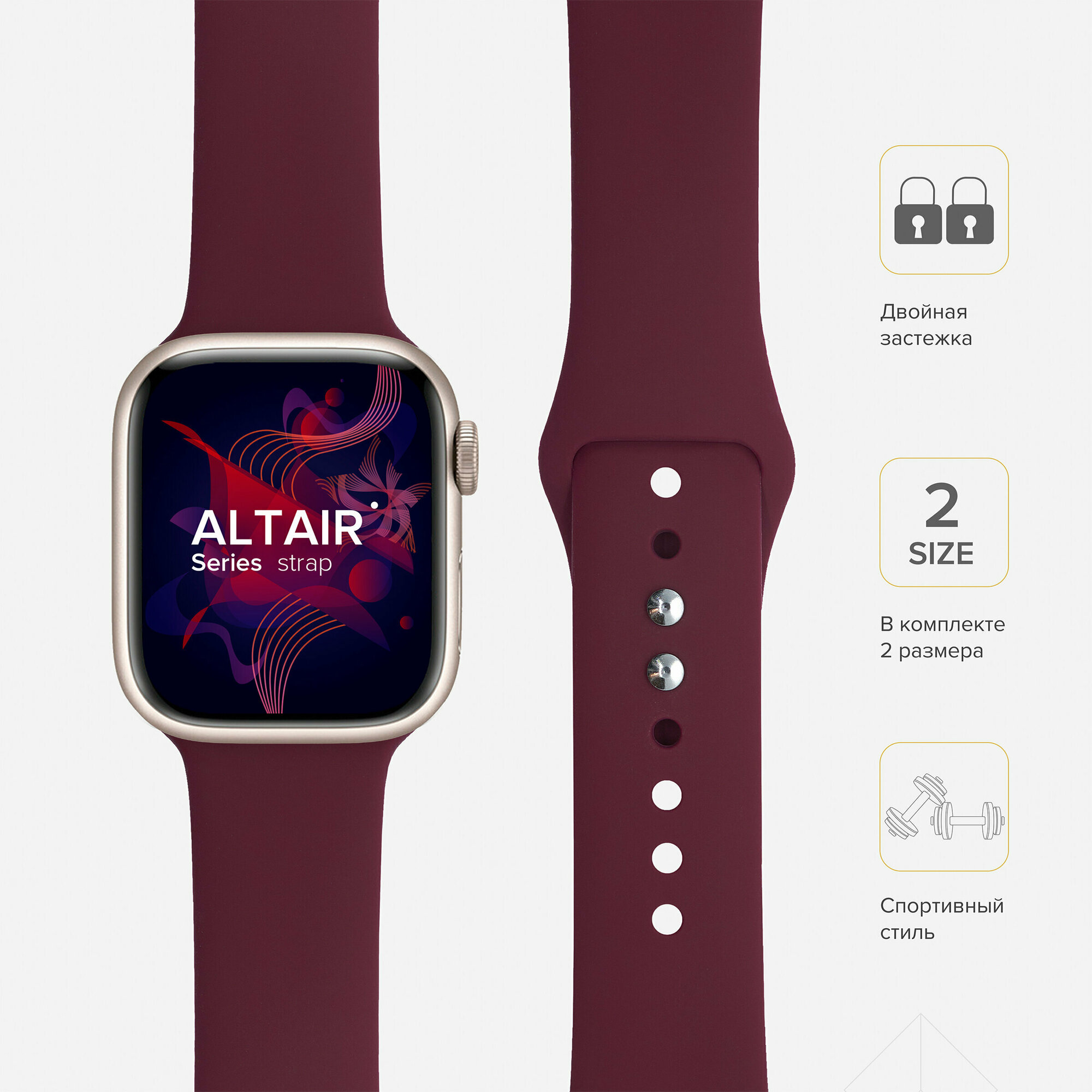 Силиконовый ремешок для Apple Watch 42/44/45 mm LYAMBDA ALTAIR DS-APS08-44-WR Wine red