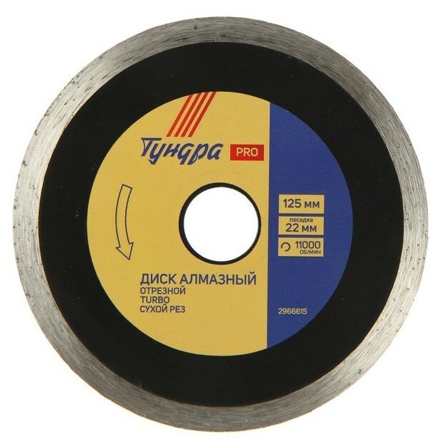 Тундра Диск алмазный отрезной TUNDRA PRO, повышенный ресурс, TURBO, сухой рез, 125 х 22 мм