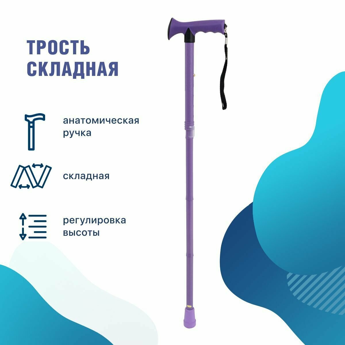Трость складная опорная с регулировкой высоты 10113 фиолетовый информация: