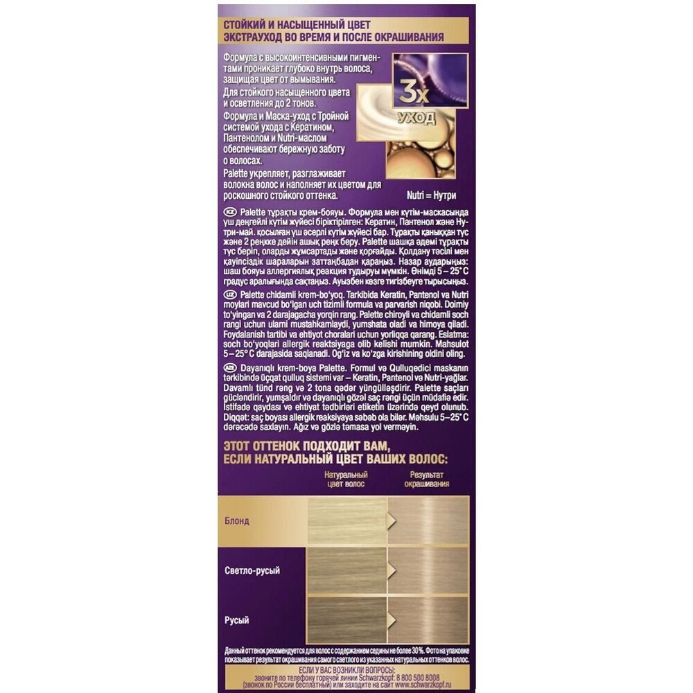 Palette Крем-краска стойкая для волос Интенсивный цвет 10-1 Серебристый блондин, 110 мл, 10 шт 4 324 ₽