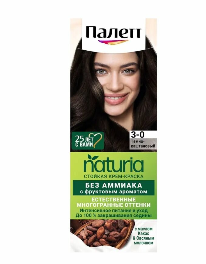 Краска для волос обновленная Palette naturals без аммиака с фруктовым ароматом Темно-каштановый 3-0 (фитолиния 800) 625 ₽