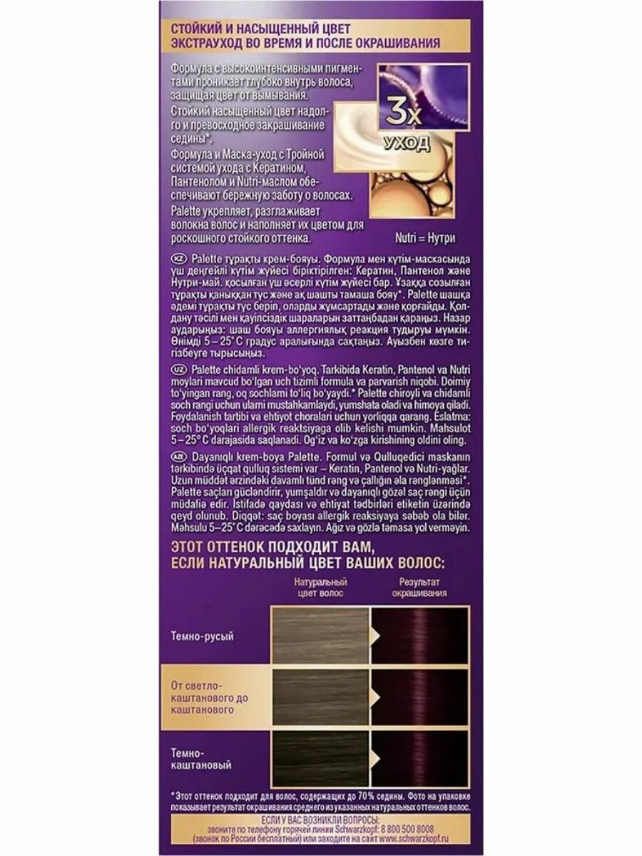 Palette Краска для волос, тон N4-89 RFE3 Баклажан, 110 мл, 2 шт. информация: