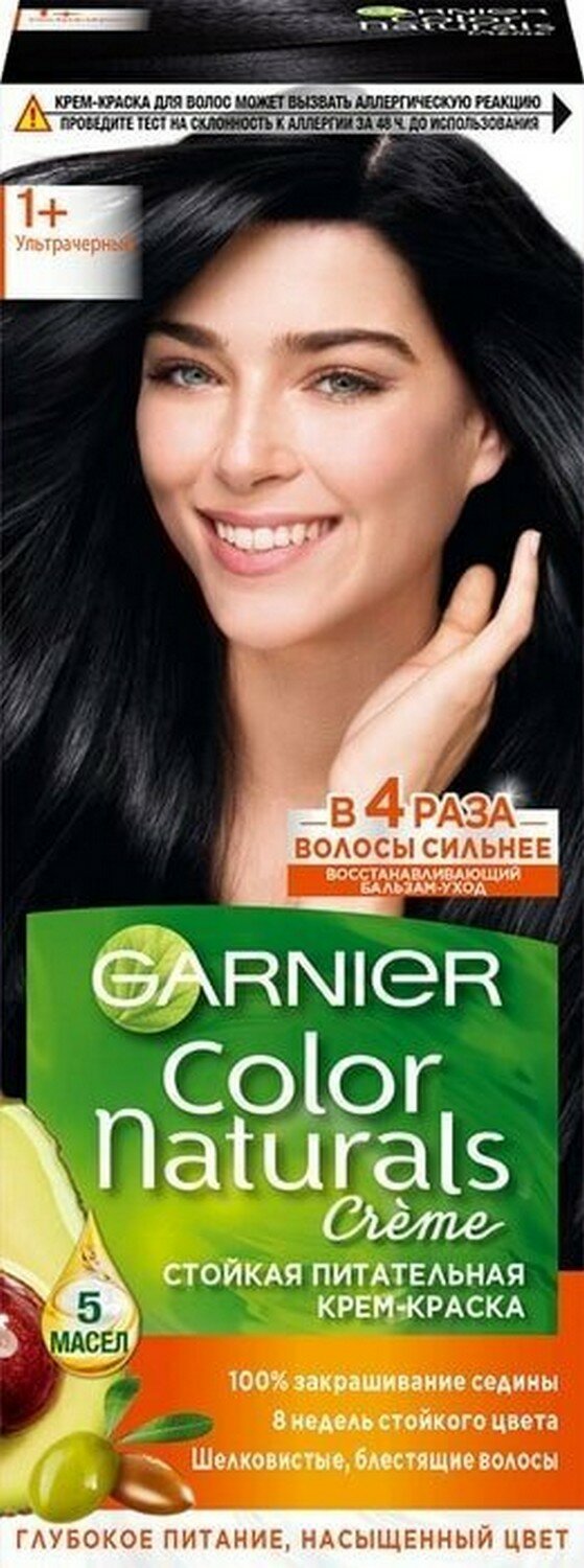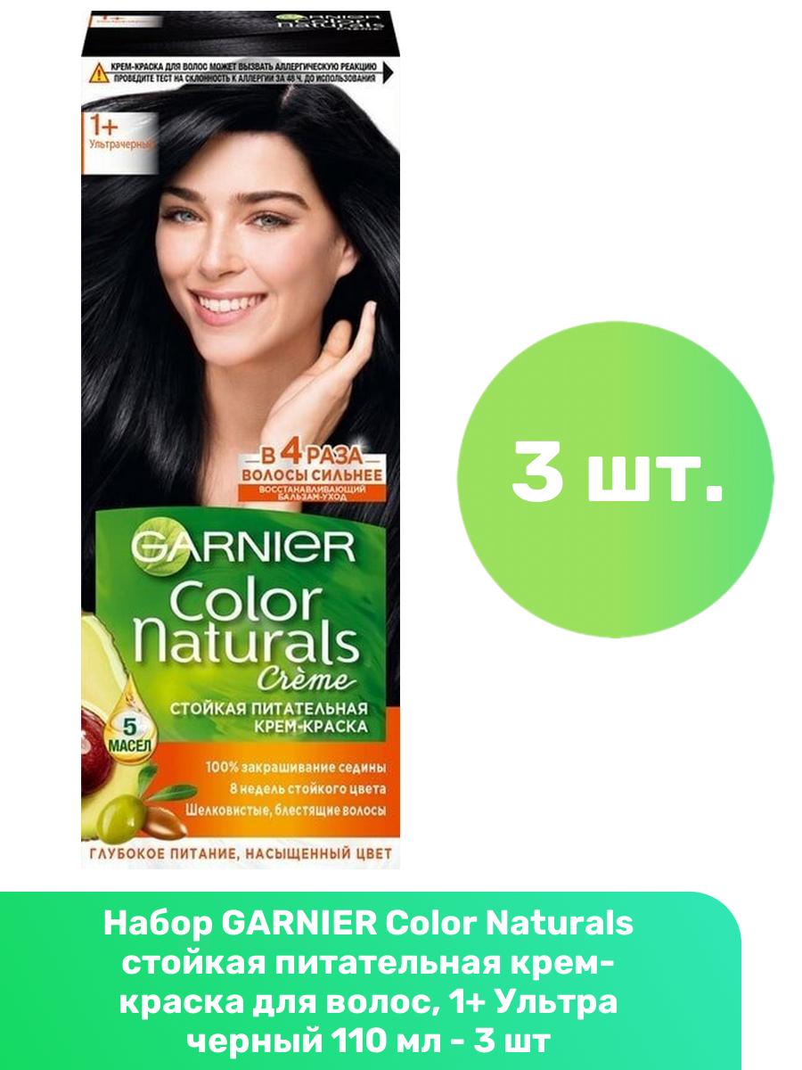 Garnier Стойкая крем-краска для волос Color Naturals, тон 1+ Ультра черный, 110 мл, 3 шт информация: