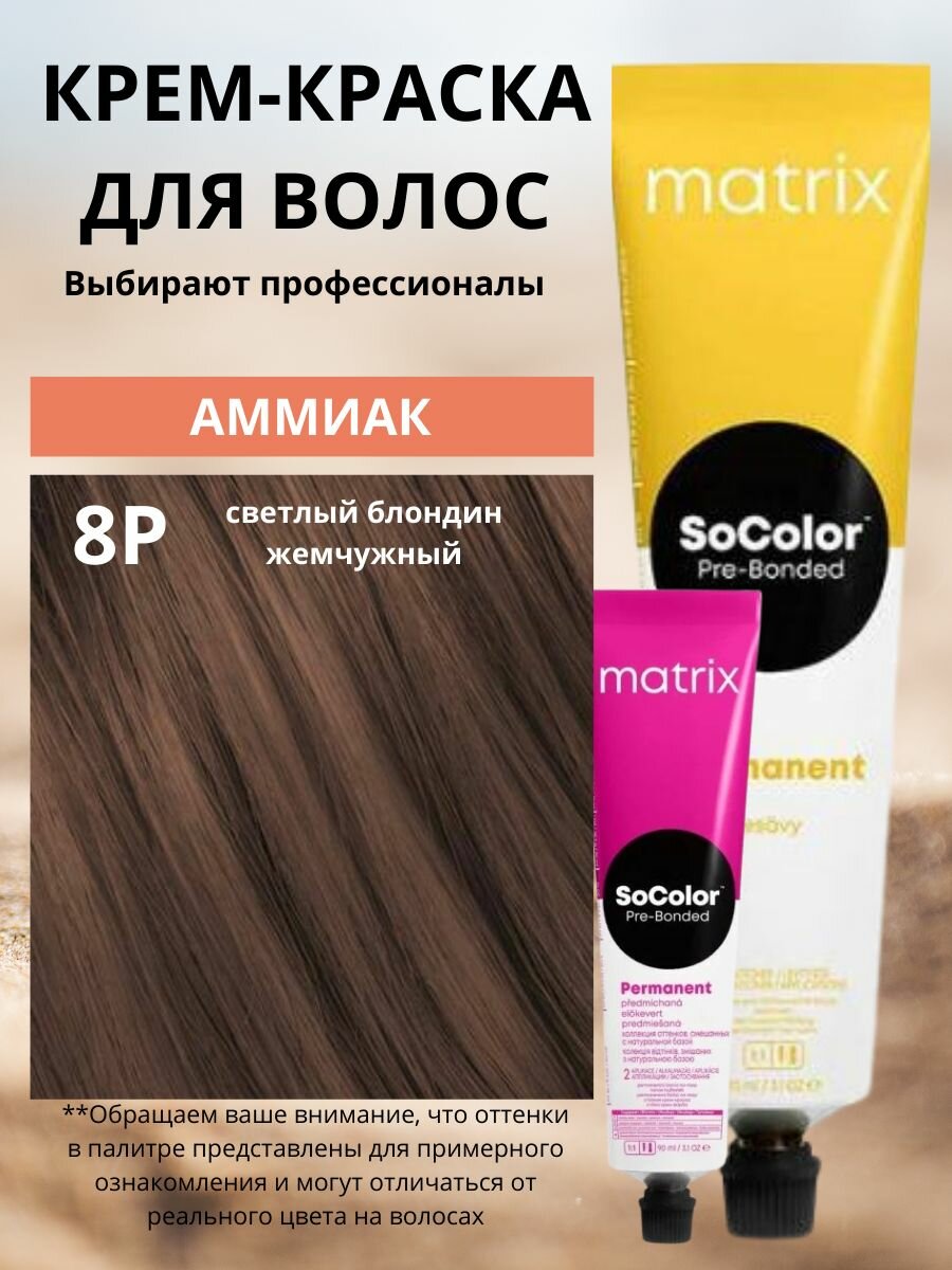Matrix SoColor Pre-Bonded - Стойкая крем-краска с бондером 8P светлый блондин жемчужный, 90 мл 657 ₽