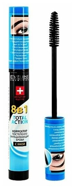10 цен на Корректор для бровей Eveline 8в1 Total Action с хной постепенно окрашивающий, 10мл