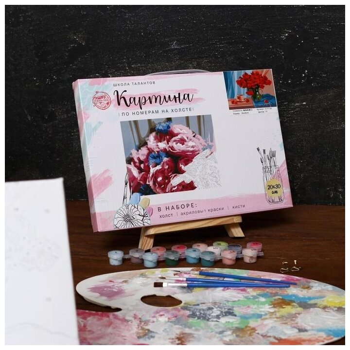 Картина по номерам Школа талантов на холсте, с подрамником "Букет из маков", 30*20 см