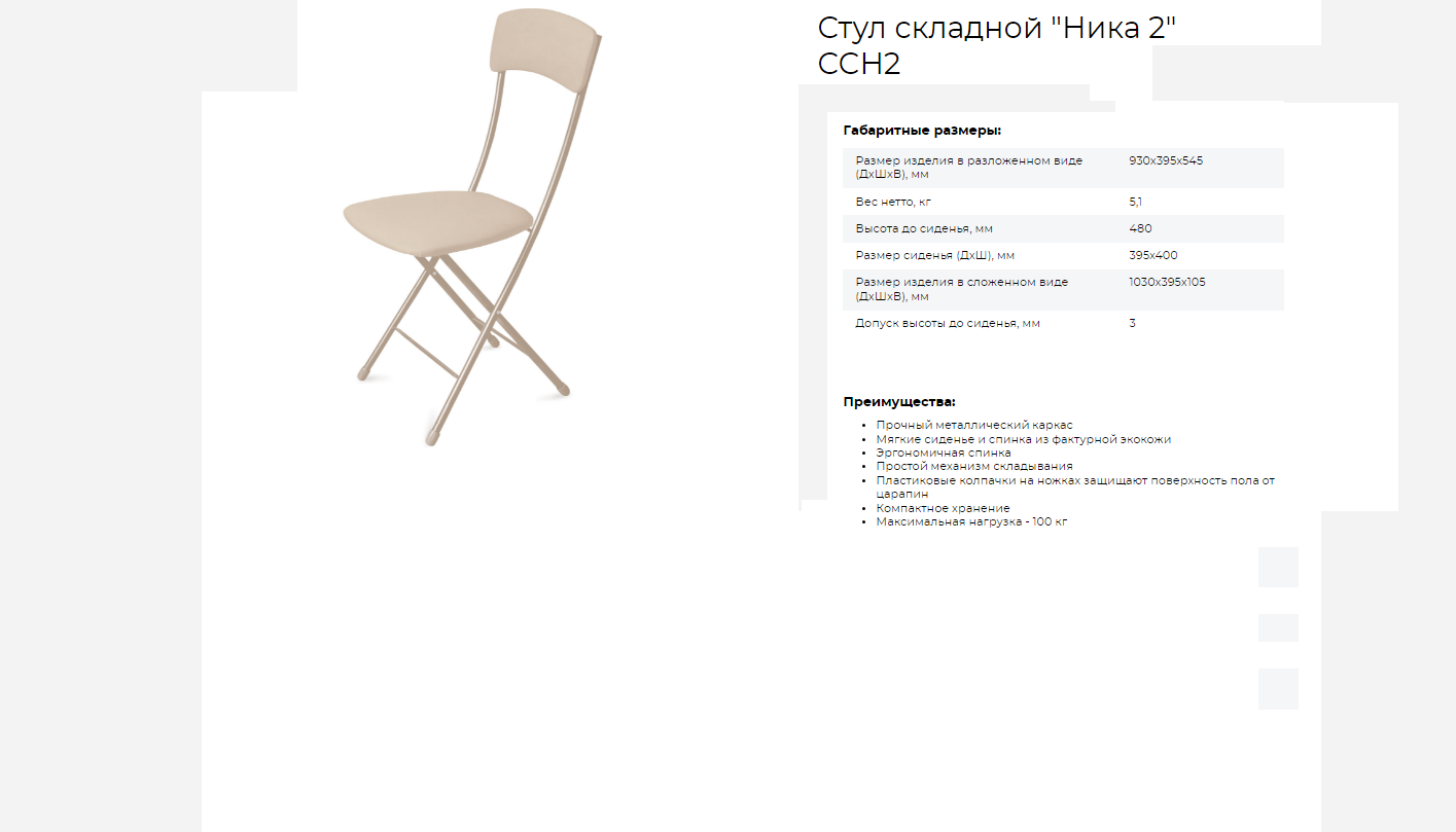 Отзывы на Стул складной Nika Ника 2, сиденье 39,5 x 40 см, слоновая кость/бежевый металлик