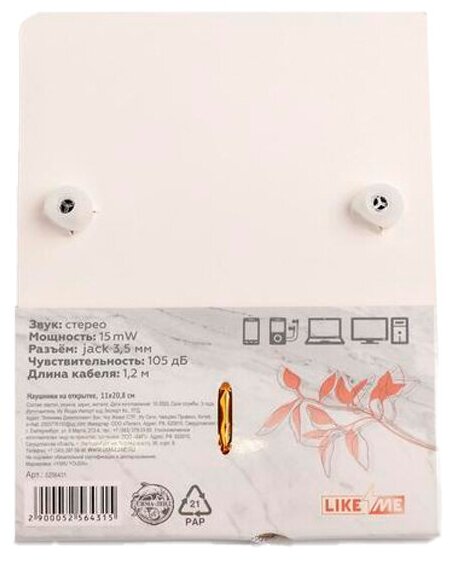 Наушники Like me вакуумные, на открытке, "Слушай, что любишь" информация: