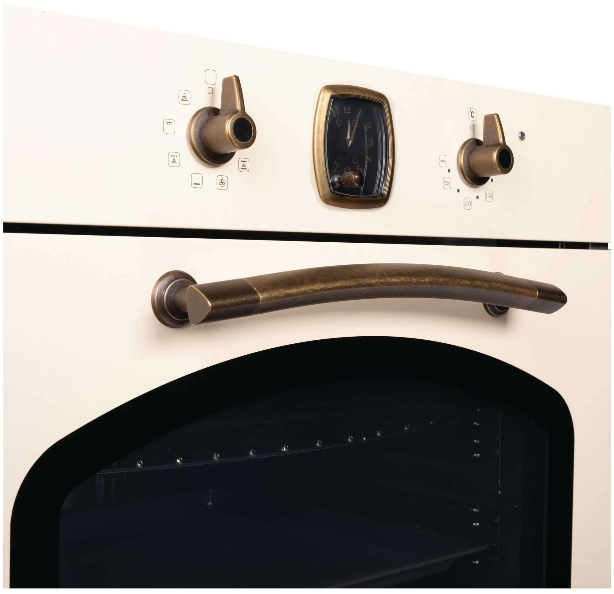 Встраиваемые электрические духовки Korting/ Retro Calabria, 59.8 х 59.5 x 56 см, 8 режимов нагрева, гриль, таймер, телескопические направляющие, слоновая кость+бронза