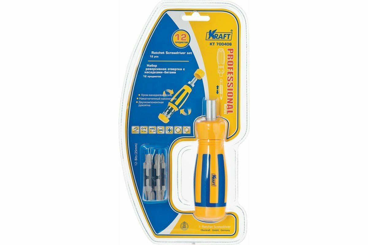 Набор: реверсивная отвертка с насадками-битами 12 KRAFT KT700406
