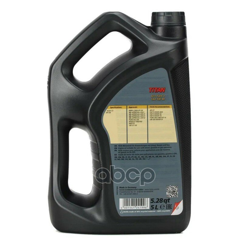FUCHS 602007278 TITAN Масо моторное GT1 FLEX 3 5W40 5 информация: