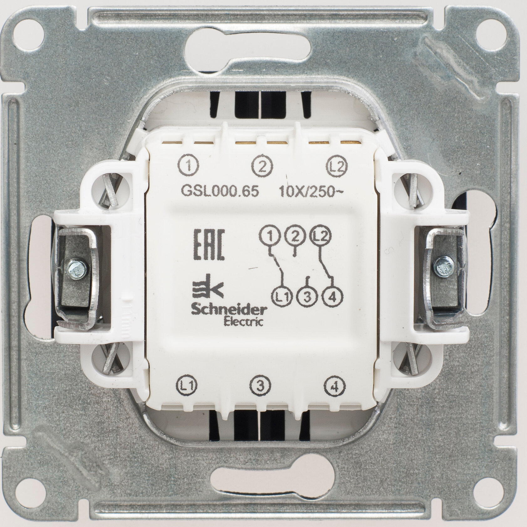 Проходной выключатель двухклавишный Schneider Electric Glossa перламутр встроенный монтаж, GSL000665 625 ₽