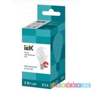 Светодиодная LED лампа IEK шар G45 E14 3W(270lm) 4000K 4K 45х81 матов. ECO LLE-G45-3-230-40-E14 информация: